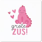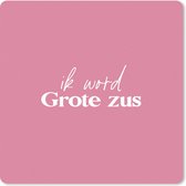 Over de fotoprintDe quote: "Ik word Grote zus" tegen een roze achtergrond..