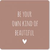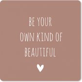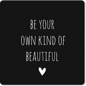 Muismat XXL 60x60 cm - Bureau onderlegger - Bureau mat Engelse quote "Be your own kind of beautiful" met een hartje op een witte achtergrond - Bureaumat - Gaming mousepad xl - Bureaulegger groot - Computer deskmat