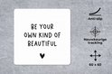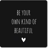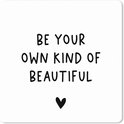 Op dit beeld is de Engelse quote "Be your own kind of beautiful" met zwarte letters geschreven op een witte achtergrond. Onder de quote is een klein hartje te zien..