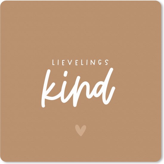 Quote: 'Lievelingskind' wit spreuk op een bruine achtergrond..