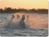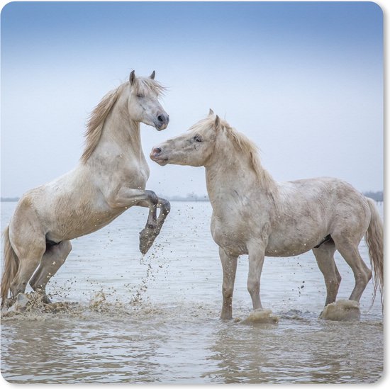 Muismat XXL 60x60 cm - Bureau onderlegger - Bureau mat Twee paarden in het water in Camargue - Bureaumat - Gaming mousepad xl - Bureaulegger groot - Computer deskmat