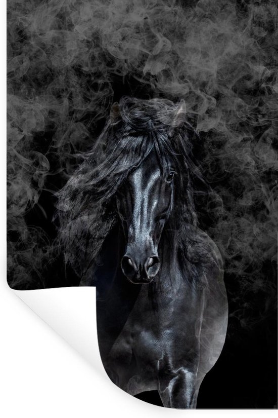 Muurstickers - Sticker Folie - Paard - Zwart - Rook - 40x60 cm - Plakfolie - Muurstickers Kinderkamer - Zelfklevend Behang - Zelfklevend behangpapier - Stickerfolie