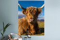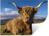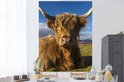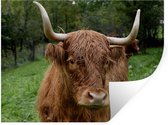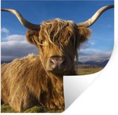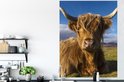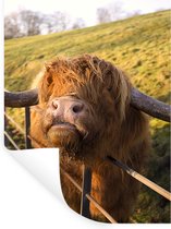 Muurstickers - Sticker Folie - Schotse Hooglander - Dieren - Gras - 120x160 cm - Plakfolie - Muurstickers Kinderkamer - Zelfklevend Behang XXL - Zelfklevend behangpapier - Stickerfolie