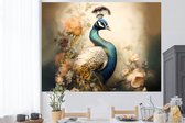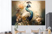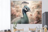 Muurstickers - Sticker Folie - Pauw - Vogels - Bloemen - Boom - Botanisch - 160x120 cm - Plakfolie - Muurstickers Kinderkamer - Zelfklevend Behang XXL - Zelfklevend behangpapier - Stickerfolie