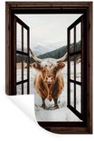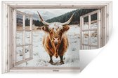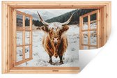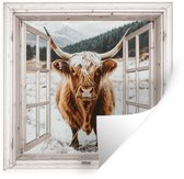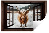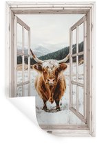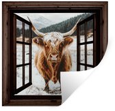 Muurstickers - Sticker Folie - Schotse Hooglander - Landschap - Landelijk - Bergen - Winter - Doorkijk - Donker - 80x120 cm - Plakfolie - Muurstickers Kinderkamer - Zelfklevend Behang - Zelfklevend behangpapier - Stickerfolie
