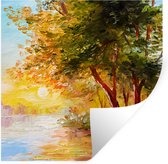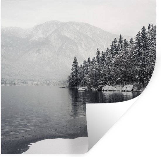 Muurstickers - Sticker Folie - Water - Winter - Natuur - Dennenboom - 100x100 cm - Plakfolie - Muurstickers Kinderkamer - Zelfklevend Behang XXL - Zelfklevend behangpapier - Stickerfolie