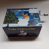 Het muziekdoosje is 8,5 cm breed (incl. metalen slinger), 4,5 cm. hoog en 3 cm diep. In het fraai bedrukte doosje van karton zit een metalen speeldoosje, dat speelt op het moment dat aan de slinger wordt gedraaid.
