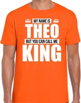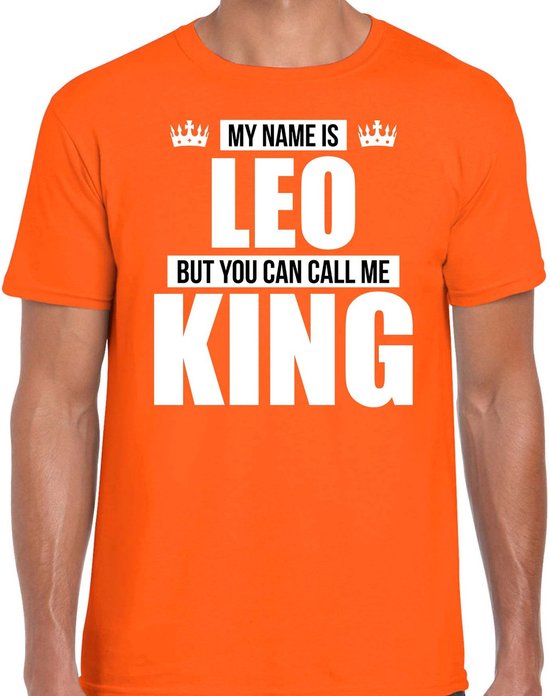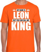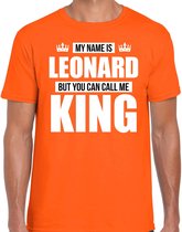 Naam cadeau t-shirt - my name is Leo - but you can call me King - oranje - heren - koningsdag - verjaardag - sport XL