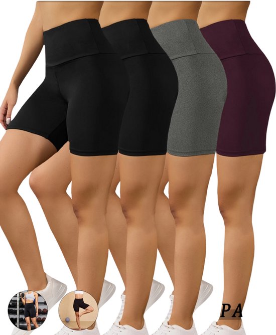Nivard Biker Short Dames - Korte Legging - Lange Onderbroek - Bikershort - Met Pijpjes - 4 Pcs - Zwart/Grijs/Bordeauxrood - Maat XL