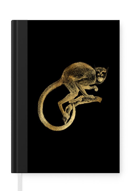 Notitieboek - Schrijfboek - Aap - Vintage - Goud - Notitieboekje klein - A5 formaat - Schrijfblok