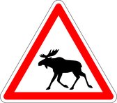 Dit pas op voor elanden bord geeft aan dat er hier gevaar is voor elanden. Door hiervoor te waarschuwen, kunnen mensen hier rekening mee houden.