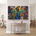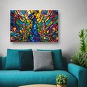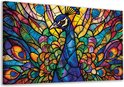 Pauw schilderij - Dier schilderijen - Canvas schilderijen Glas - Wanddecoratie kinderkamer - Canvas schilderij woonkamer - Kunstwerk canvas 70x50 cm