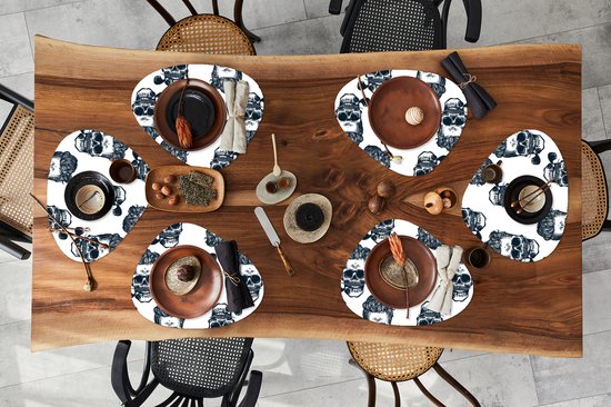 Placemat organisch - Placemats organic - Onderleggers - Puber - Skull - Pijp - Patronen - 6 stuks