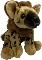 Pluche gevlekte hyena knuffel 18 cm. Lief zittend knuffel hyena met kraalogen. De Ravensden pluche knuffel hyena is een schattige en gedetailleerde knuffel die het uiterlijk van dit roofdier perfect nabootst. Met zijn gevlekte bruine vacht en speelse uitstraling, is deze hyena ideaal voor dierenliefhebbers, knuffelfans en verzamelaars van wilde dieren. De pluche hyena heeft een lengte van 18 cm en is perfect voor knuffelen, spelen of als decoratie in een dieren- of natuurthema. Hyena's safaridieren knuffeldieren/knuffelbeesten voor kinderen. Voeg deze gevlekte hyena toe aan je collectie en ontdek de wereld van wilde dieren!