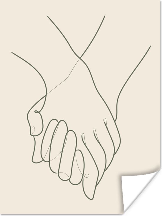 Poster Handen - Line art - Zwart - Groen - 120x160 cm XXL