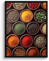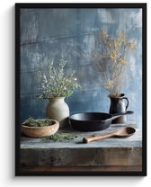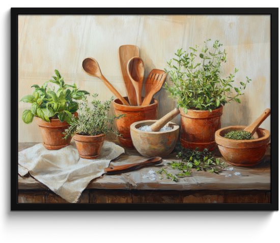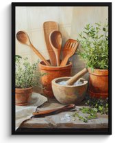 Poster in lijst - Fotolijst 80x60 cm - Posters - Potten - Kruiden - Hout - Posterlijst zwart - Decoratie - Wanddecoratie woonkamer - Muurdecoratie slaapkamer