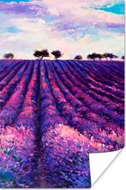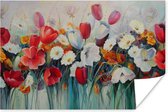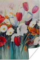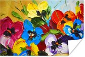 Poster Schilderij - Olieverf - Bloemen - Blauw - 60x40 cm