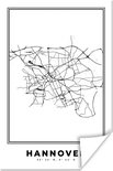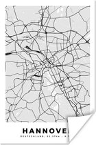 Poster Stadskaart – Zwart Wit - Kaart – Hannover – Duitsland – Plattegrond - 60x90 cm
