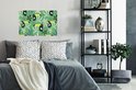 Dit beeld doet denken aan de jungle en bevat toekans die zich verstoppen tussen de bladeren op een groene achtergrond.