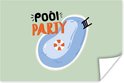 In het zwembad zit blauw water. De quote "Pool party" staat erbij.