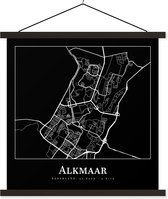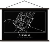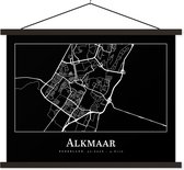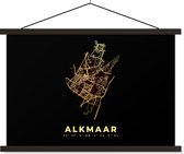 Posterhanger incl. Poster 150x100 cm - Schoolplaat - Alkmaar - Plattegrond - Kaart - Stadskaart - Textielposter - Zwarte latten - Plattegrond