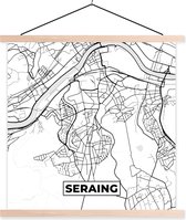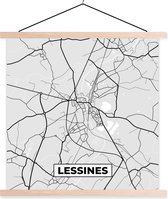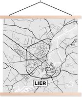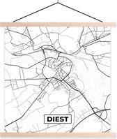 Posterhanger incl. Poster 120x120 cm - Schoolplaat - België – Diest – Stadskaart – Kaart – Zwart Wit – Plattegrond - Textielposter - Blanke latten - Stadskaart