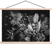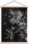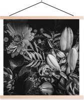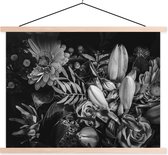 Posterhanger incl. Poster 40x53 cm - Schoolplaat - Boeket - Stilleven - Bloemen - Planten - Rood - Textielposter - Blanke latten