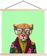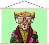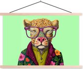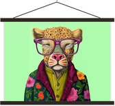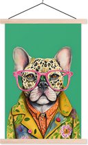 - Posterhanger incl. Poster - Schoolplaat - Dieren - Bril - Hond - Design - 120x180 cm - Blanke latten