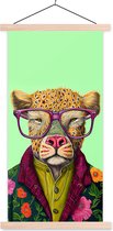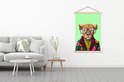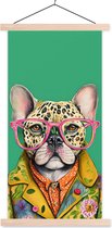 Posterhanger incl. Poster 120x180 cm - Schoolplaat - Dieren - Bril - Hond - Design - Textielposter - Blanke latten