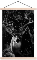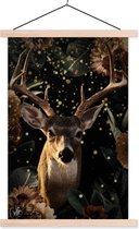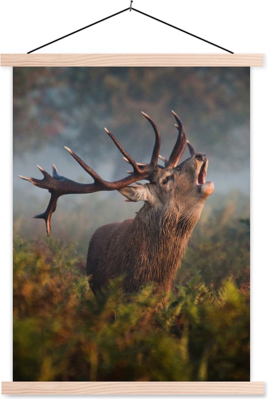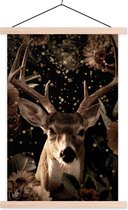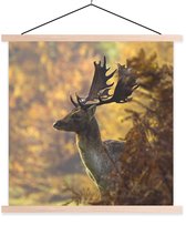 Posterhanger incl. Poster 120x160 cm - Schoolplaat - Hert - Gewei - Planten - Herfst - Textielposter - Blanke latten