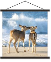 Posterhanger incl. Poster 40x30 cm - Schoolplaat - Herten - Zee - Water - Zand - Textielposter - Zwarte latten