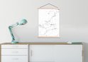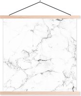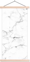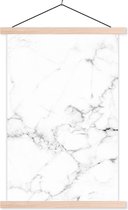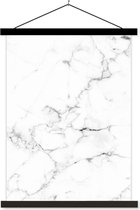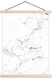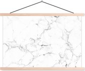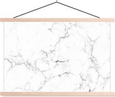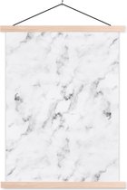 Posterhanger incl. Poster 60x80 cm - Schoolplaat - Marmer - Wit - Grijs - Luxe - Marmerlook - Structuur - Textielposter - Blanke latten