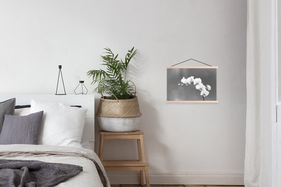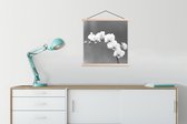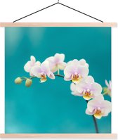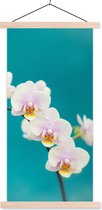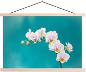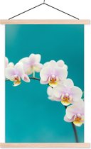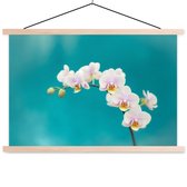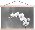 Posterhanger incl. Poster 60x40 cm - Schoolplaat - Orchidee - Bloemen - Plant - Wit - Paars - Textielposter - Blanke latten