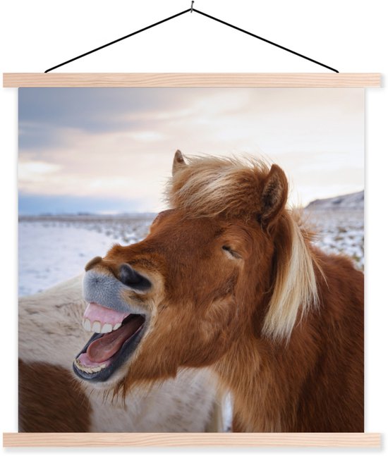Posterhanger incl. Poster 60x60 cm - Schoolplaat - Paard - Strand - Bruin - Textielposter - Blanke latten