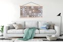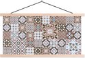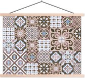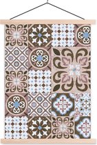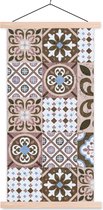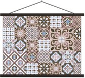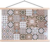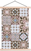 Posterhanger incl. Poster 120x60 cm - Schoolplaat - Patronen - Vintage - Bruin - Bloemen - vormen - Textielposter - Blanke latten