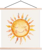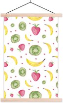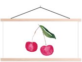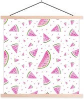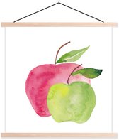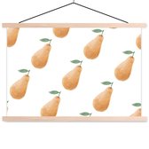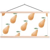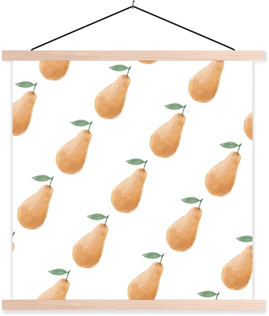 Posterhanger incl. Poster 90x90 cm - Schoolplaat - Peren - Aquarel - Wit - Textielposter - Blanke latten