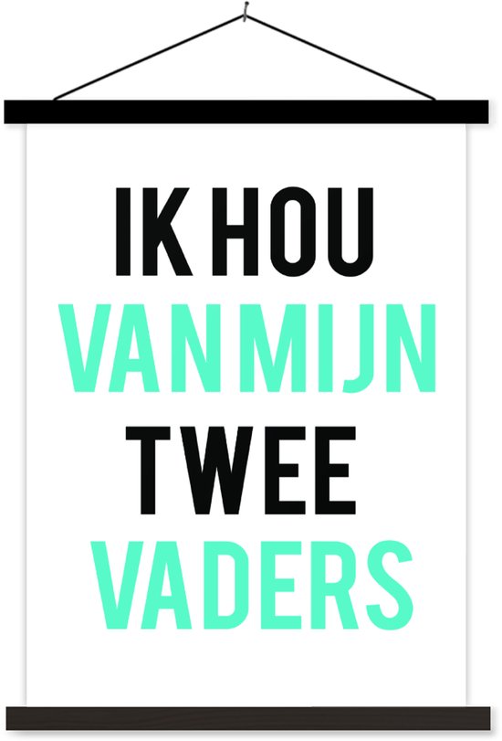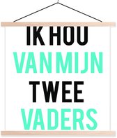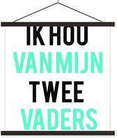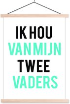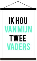 Posterhanger incl. Poster 90x120 cm - Schoolplaat - Quotes - Ik hou van mijn twee vaders - Papa - Spreuken - Textielposter - Zwarte latten - Vaderdag cadeau - Geschenk - Cadeautje voor hem - Tip - Mannen