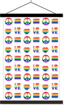 Posterhanger incl. Poster 60x90 cm - Schoolplaat - Regenboog - Patroon - Zomer - Textielposter - Zwarte latten