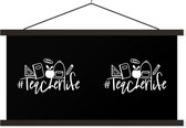 Posterhanger incl. Poster 90x45 cm - Schoolplaat - School - Boeken - Quotes - Je bent nooit te oud om te leren - Textielposter - Zwarte latten