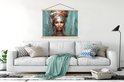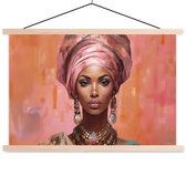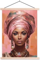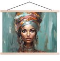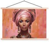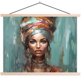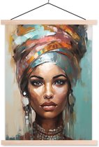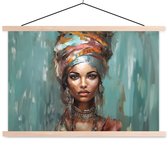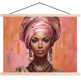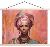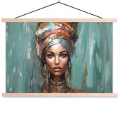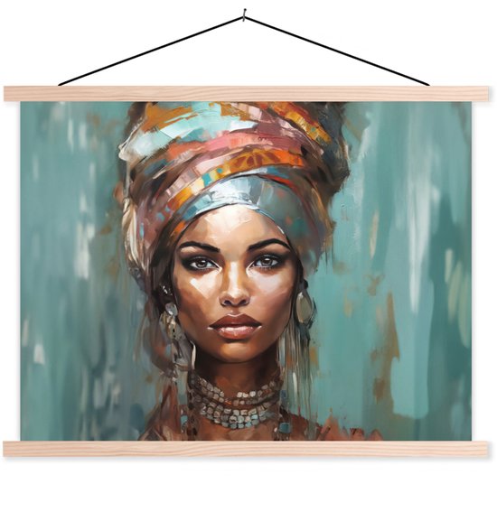 Posterhanger incl. Poster 150x113 cm - Schoolplaat - Vrouw - Kunst - Sieraden - Portret - Textielposter - Blanke latten