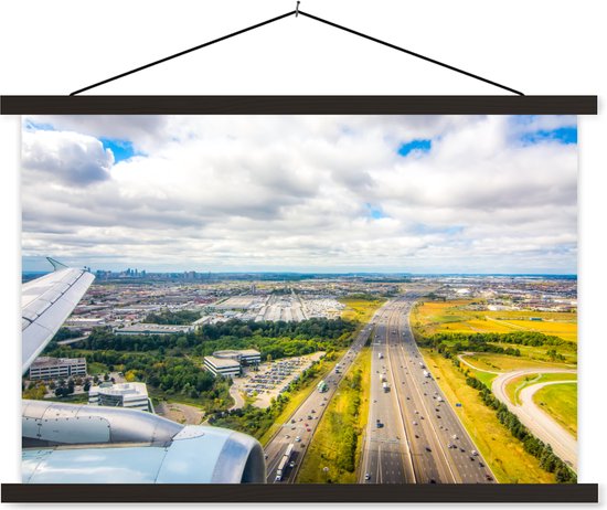 Posterhanger incl. Poster 60x40 cm - Schoolplaat - Zonnige luchtfoto van Amsterdam - Textielposter - Zwarte latten