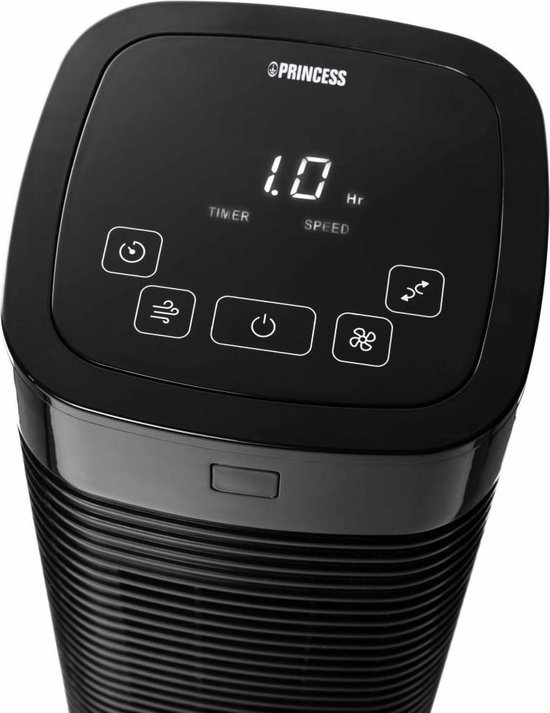De Princess torenventilator heeft een zeer luxe uitstraling met LED-indicatoren. Deze LED-indicatoren zorgen er voor dat de ventilator eenvoudig te bedienen is. Kies uit drie verschillende luchtstroomsterktes normaal, natuurlijk of slaap. Bij de instelling natuurlijk wisselt de ventilator de windsterkte af waardoor je het gevoel van een strandwandeling krijgt. De slaapstand is perfect als je de ventilator in de slaapkamer gebruikt doordat er een aangenaam zacht briesje uitkomt dat toch uitermate verkoelend is.