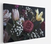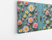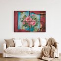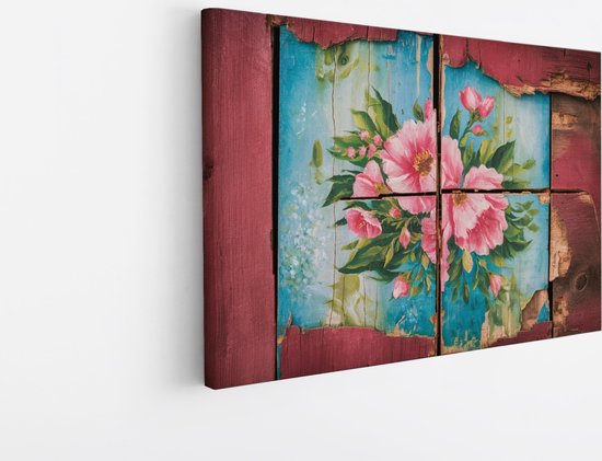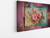 Saammp Canvas Schilderij - Bloemen op hout - Abstract - 60x40 - Foto op canvas - Wanddecoratie - Muurdecoratie Woonkamer - Kantoor Decoratie