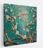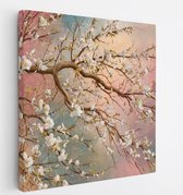 Saammp Canvas Schilderij - Lente Bloesem Tak - Natuur - Abstract - 40x40 - Foto op canvas - Wanddecoratie - Muurdecoratie Woonkamer - Kantoor Decoratie