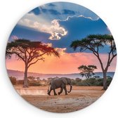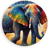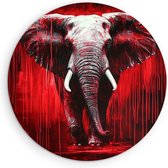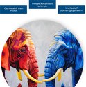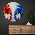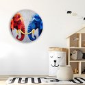 Saammp Muurcirkel Hout - Olifant - Rood - Blauw - Dieren - Ø 90 - Wandcirkel - Wanddecoratie Cirkel - Muurdecoratie Woonkamer - Slaapkamer decoratie - Rond Schilderij