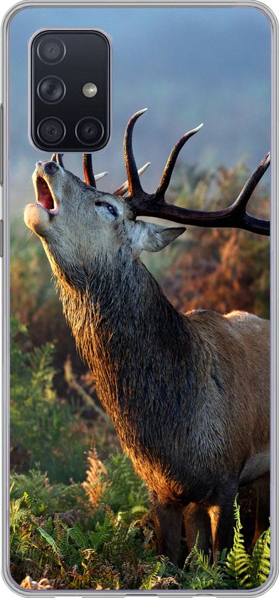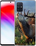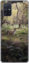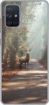 Telefoonhoesje Geschikt voor Samsung Galaxy A51 5G hoesje - Hert - Bos - Mist - Siliconen Telefoonhoesje Telefoonhoesje