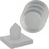Santex feest/verjaardag servies set - 20x bordjes en bekertjes - zilver - karton