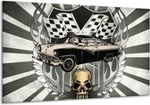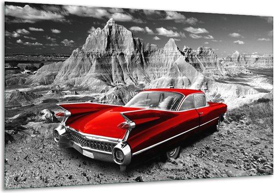 Schilderij Op Canvas Oldtimer, Auto - Grijs, Rood - 120x70cm 1Luik - Foto Op Canvas - GroepArt 6000+ Schilderijen 0p Canvas Art Collectie - Wanddecoratie - Woonkamer - Slaapkamer - Canvas Print