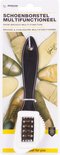 - Twee kanten: Staal voor intensief opruwen, rubber voor delicate oppervlakken