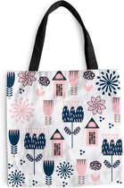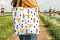 MuchoWow® Schoudertas - Strandtas - Big Shopper - Boodschappentas - Vos - Scandinavisch - Kinderen - Bladeren - Patronen - 40x40 cm - Katoenen tas